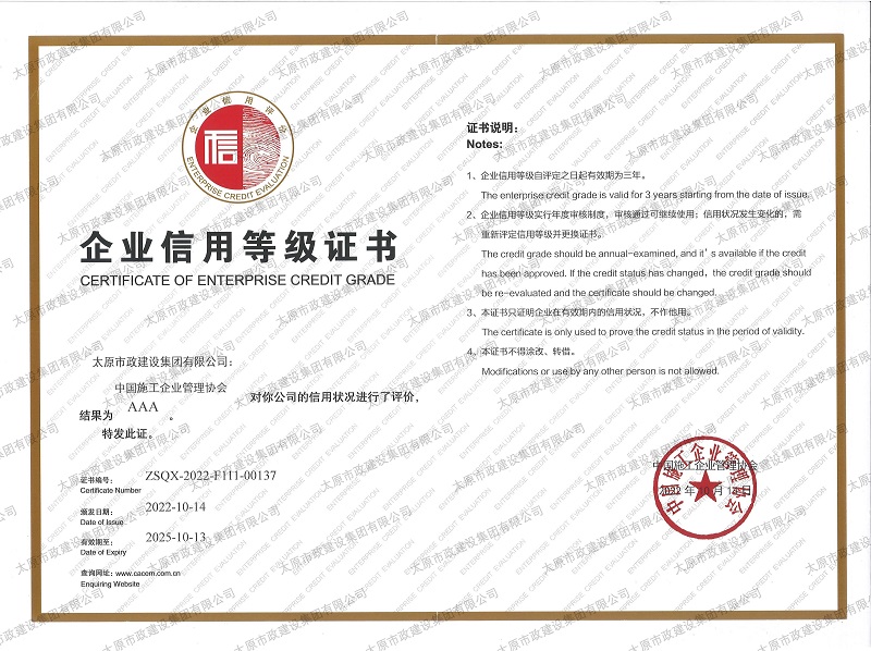 中國施工企業管理協會_AAA級企業信用等級